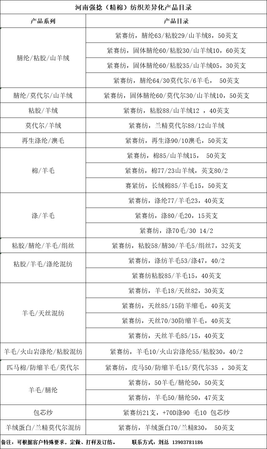 产品关键词:涡流纺 强捻纱 竹节纱 AB纱 反捻纱 气流纺 赛络纺 紧密纺