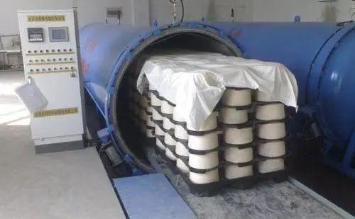 由真空转变为低温饱和蒸汽状态使整个筒子纱包括包装材料完全得到处理。冷蒸汽的水分被转移到纱线,纱线的水分分布绝对均匀,达到一致的纱线强度和摩擦值,同时,热处理还松弛了捻度。